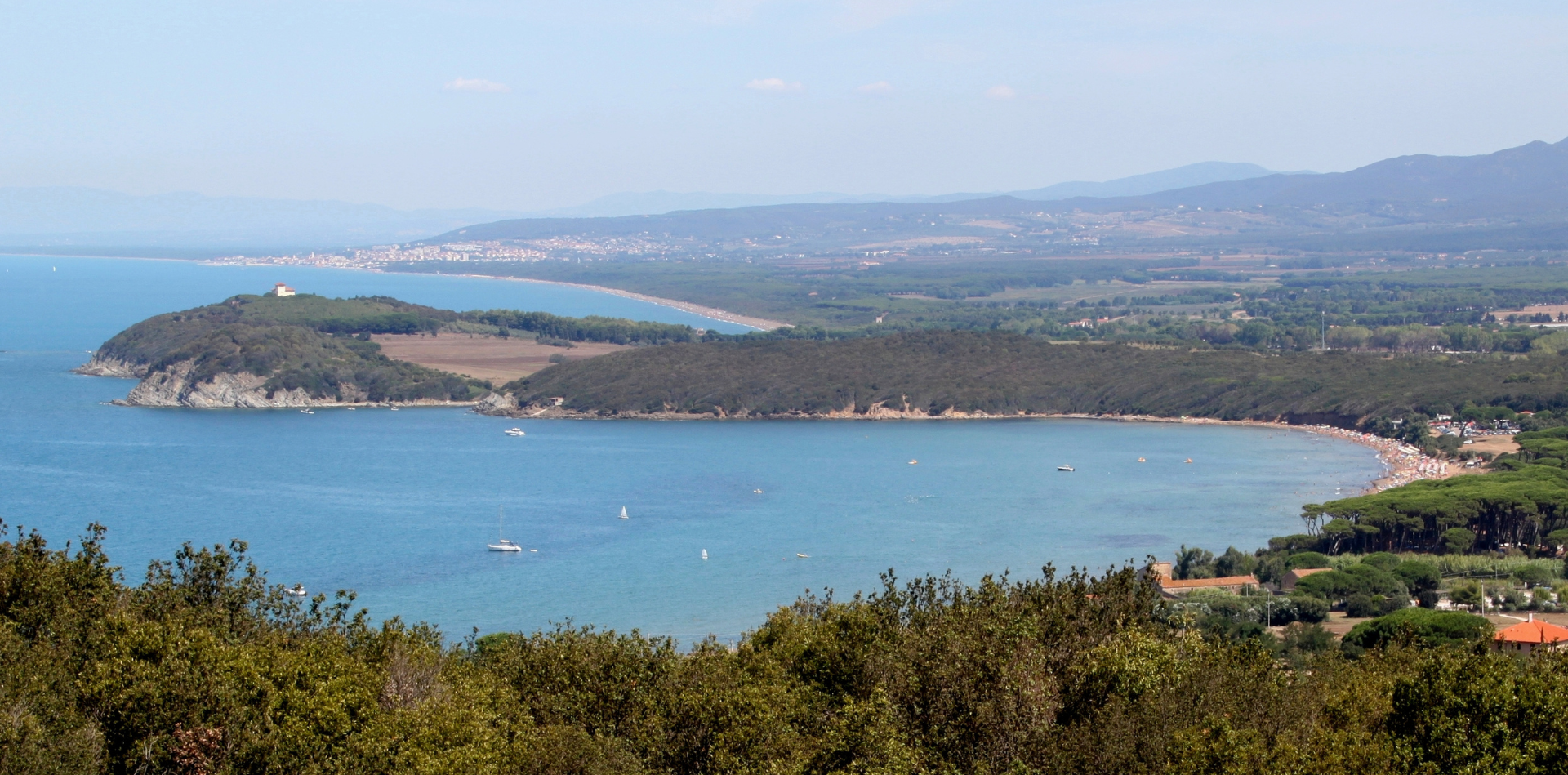 Il golfo si sviluppa per circa tre chilometri in direzione nord-sud: all’estremità meridionale c’è il porticciolo, al centro la spiaggia lunga e prevalentemente libera, al nord i sentieri che portano al promontorio e alle calette nascoste. Tutta la zona circostante — il promontorio di Populonia — è sito naturale protetto di interesse comunitario oltre che parco archeologico. Non è un caso se il paesaggio sembra così intatto.